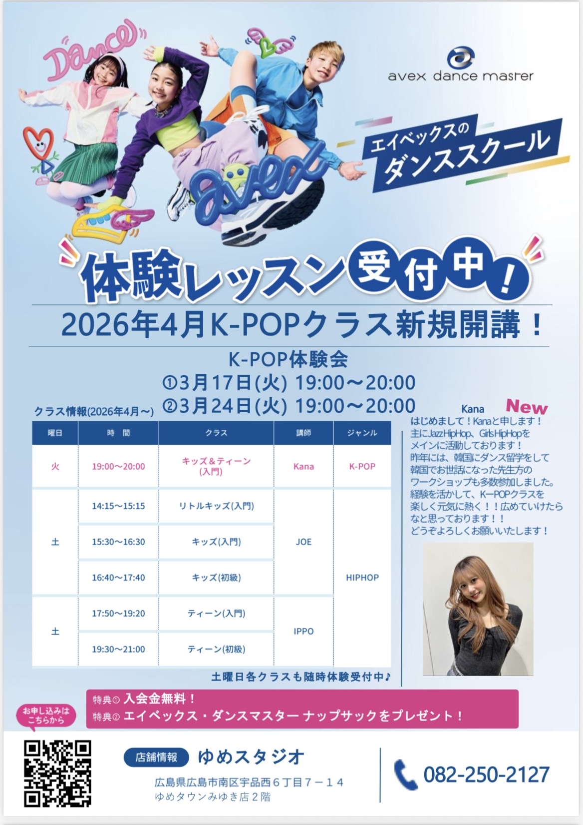 お申込みはavexダンスマスターお問い合わせフォームまたはお電話(082-250-2127)で!